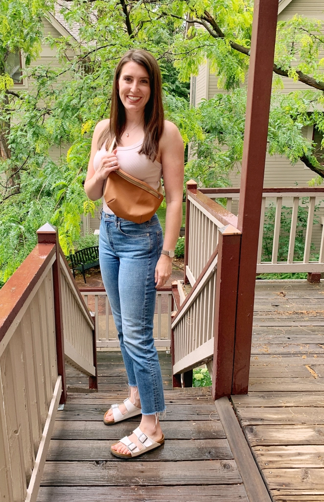 High school me (and really any time in the last 20 years me) is reeling that I would dare make and style a fanny pack on the blog today, but here we are! After moving to Boulder, Kyle and I spend so much time hiking, biking, and walking everywhere, and sometimes you just need to have your hands free. I have some crossbody bags, but most of them are really small and had very long straps, and are quite honestly way too fancy to be hiking and biking around with. I went in search of a bag pattern and found the Nicola Pouch.