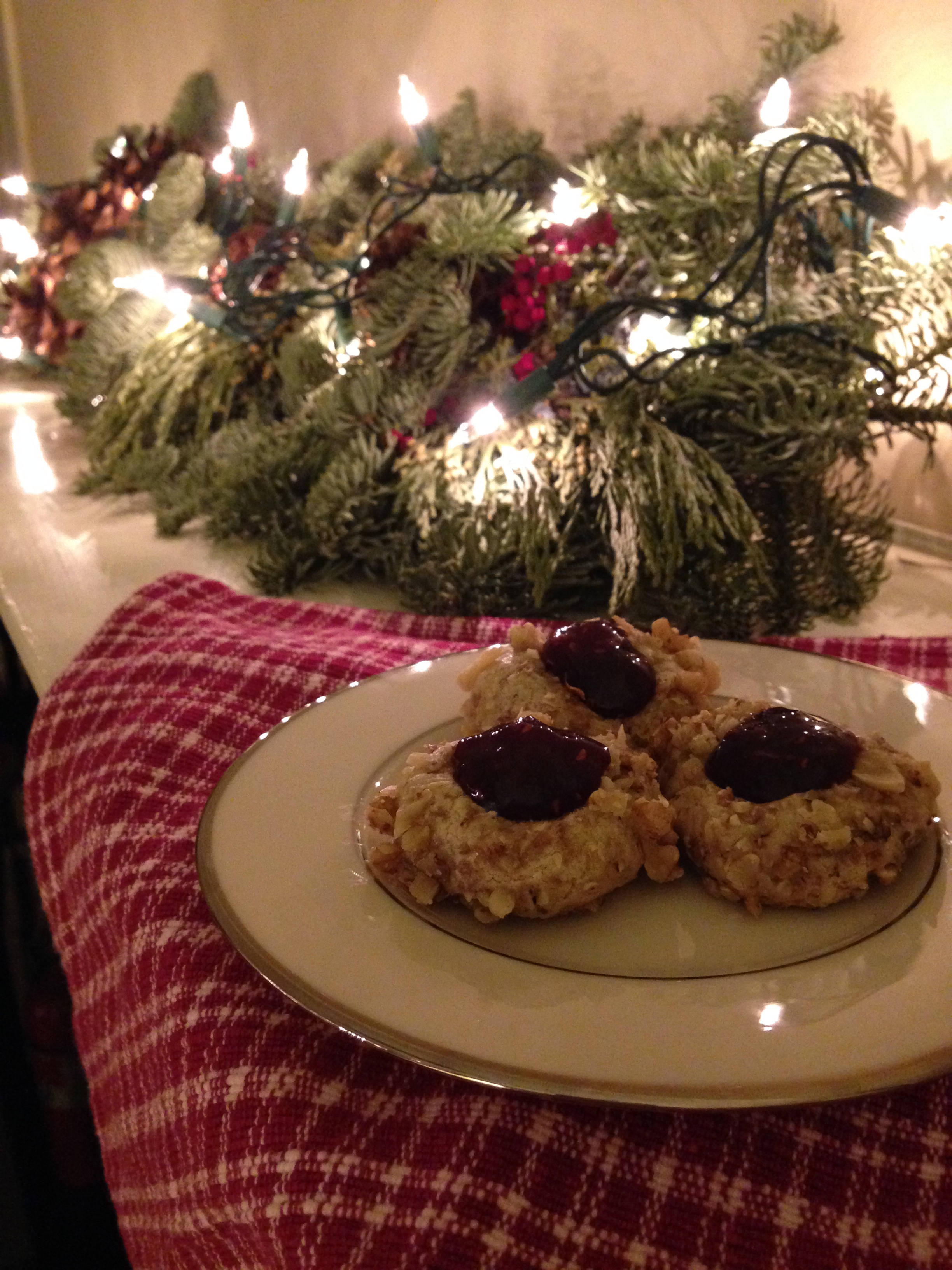 Christmas where I’m from means sweets and treats at each and every meal. A lovely family favorite is thumbprint cookies. A buttery ball of dough covered in pecans and “thumb printed” for a drop of jelly in the center, how could you go wrong? They give a special sense of decadence and color to the dessert table. Look at these beauties.