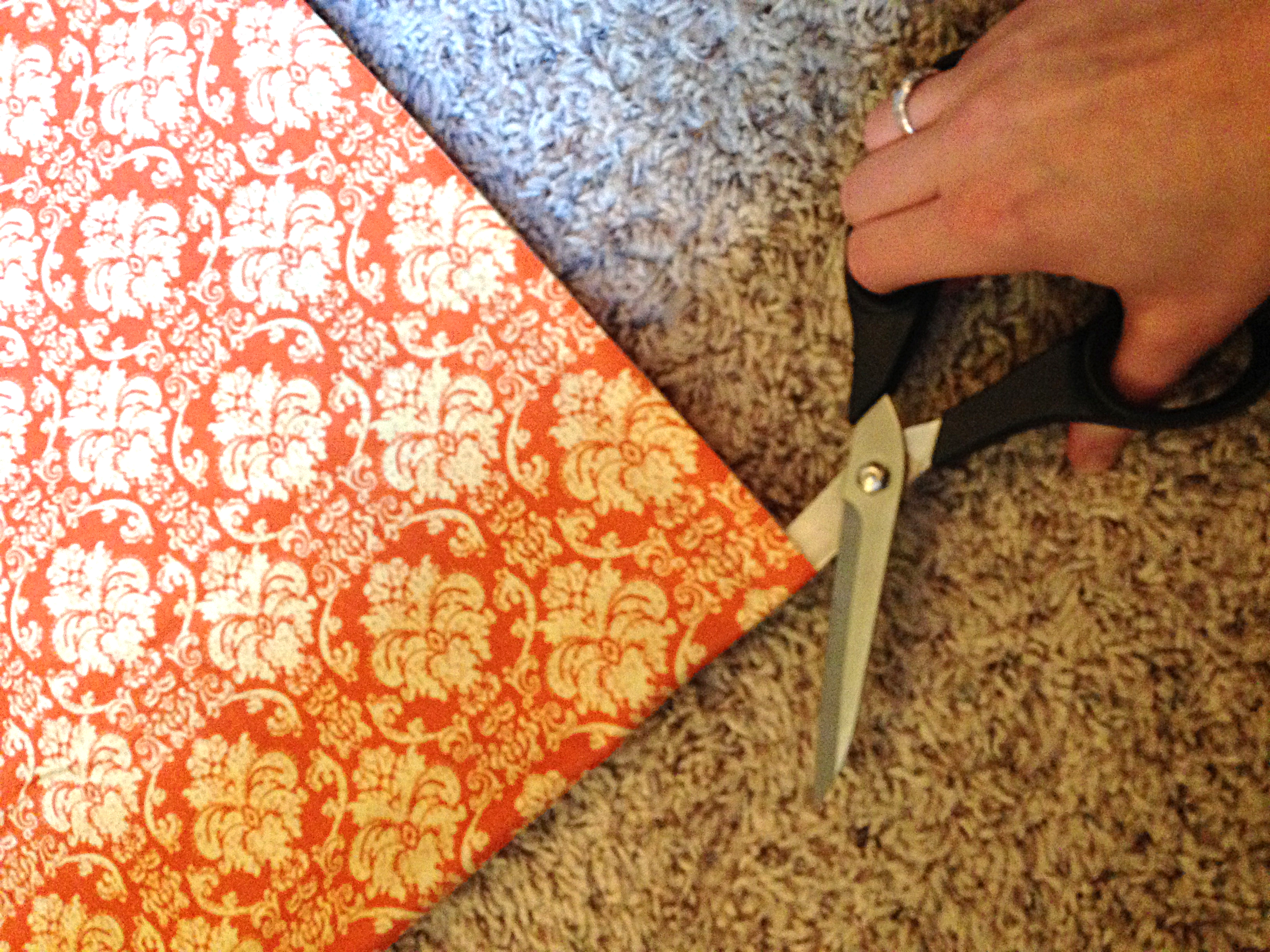 We headed over to JoAnn’s and picked out this rustic-y orange printed fabric to warm up the white walls and dark furniture. It was on sale for $4 a yard, bringing the total of the fabric to only $24. Plus some thread, you’ve got all the supplies you need for about $26, not a bad deal for personalized curtains!