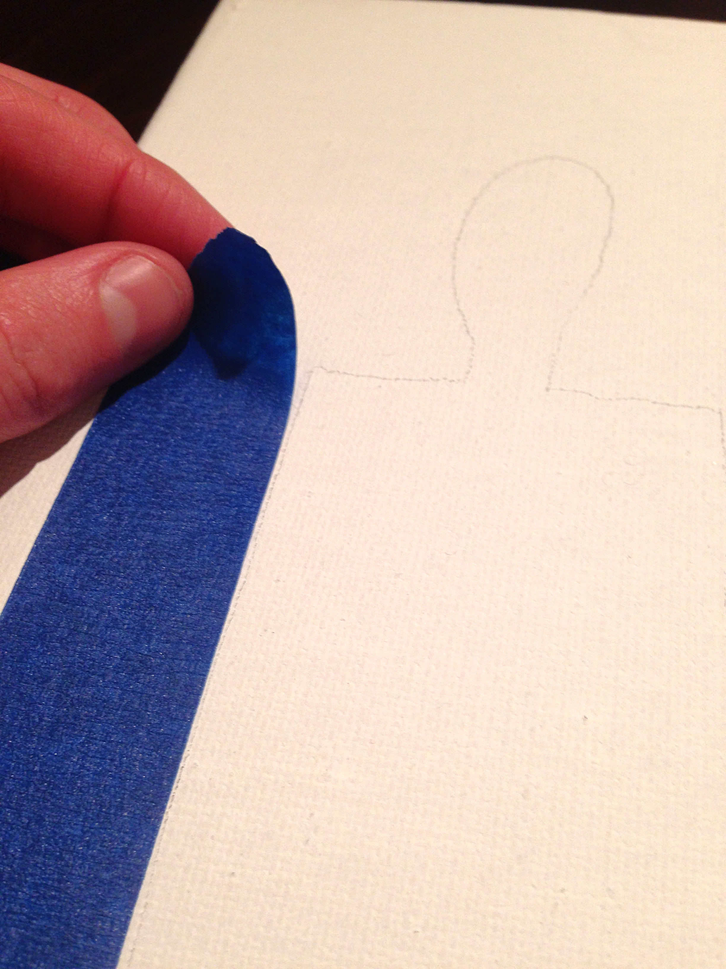 A trick for anyone worried about painting free hand on this project is to use painter’s tape! It lets you craft more haphazardly and then pull the tape away for a perfect straight line! Line the straight edges of the letters and image with the tape in order to avoid painting inside them. Once the paint has dried, the tape can be peeled away and none of your stray strokes will show!