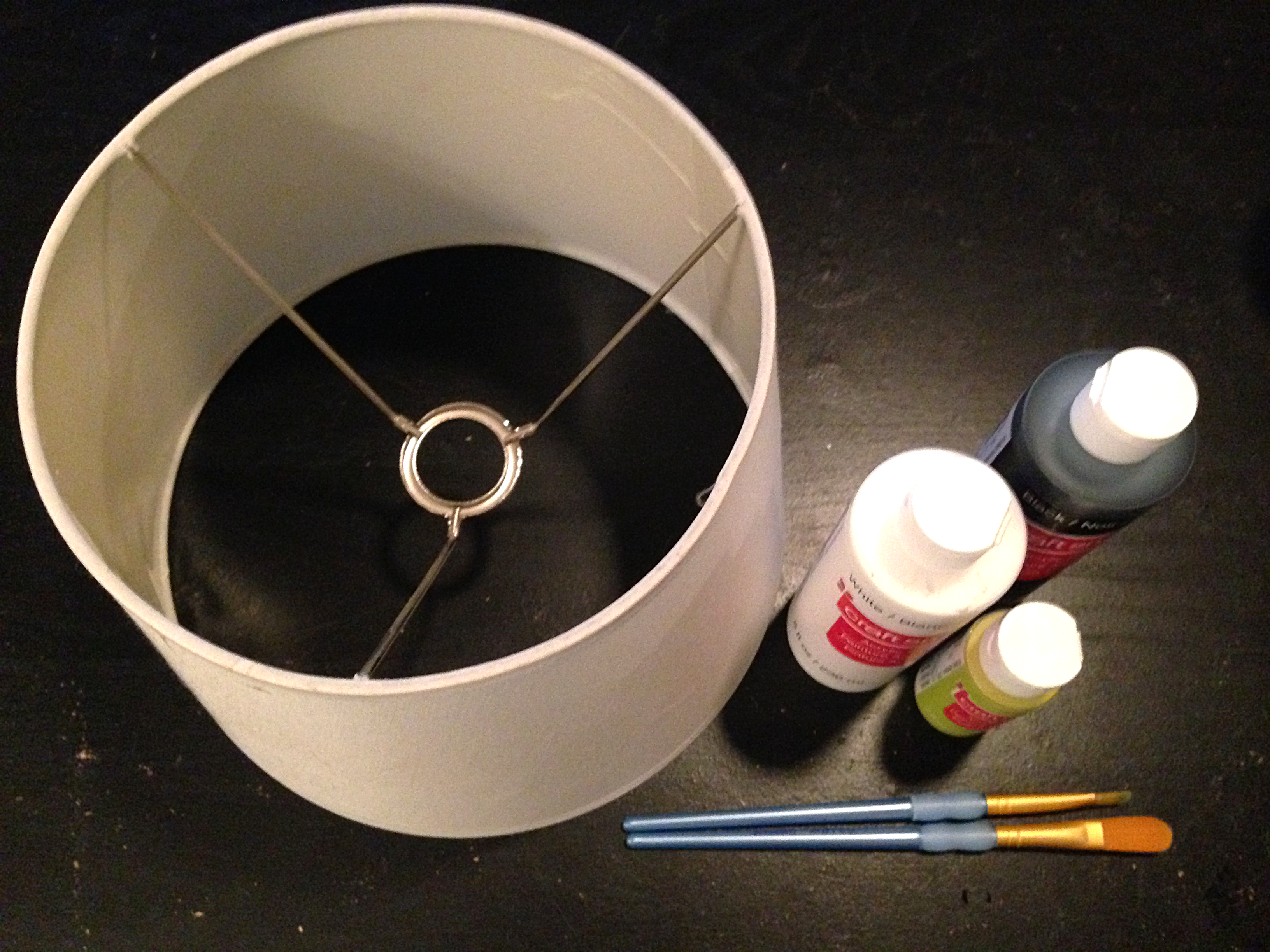 1. Lay out your lamp shade on some paper towels or newspaper to keep your table clean. Grab a paintbrush and your paint.