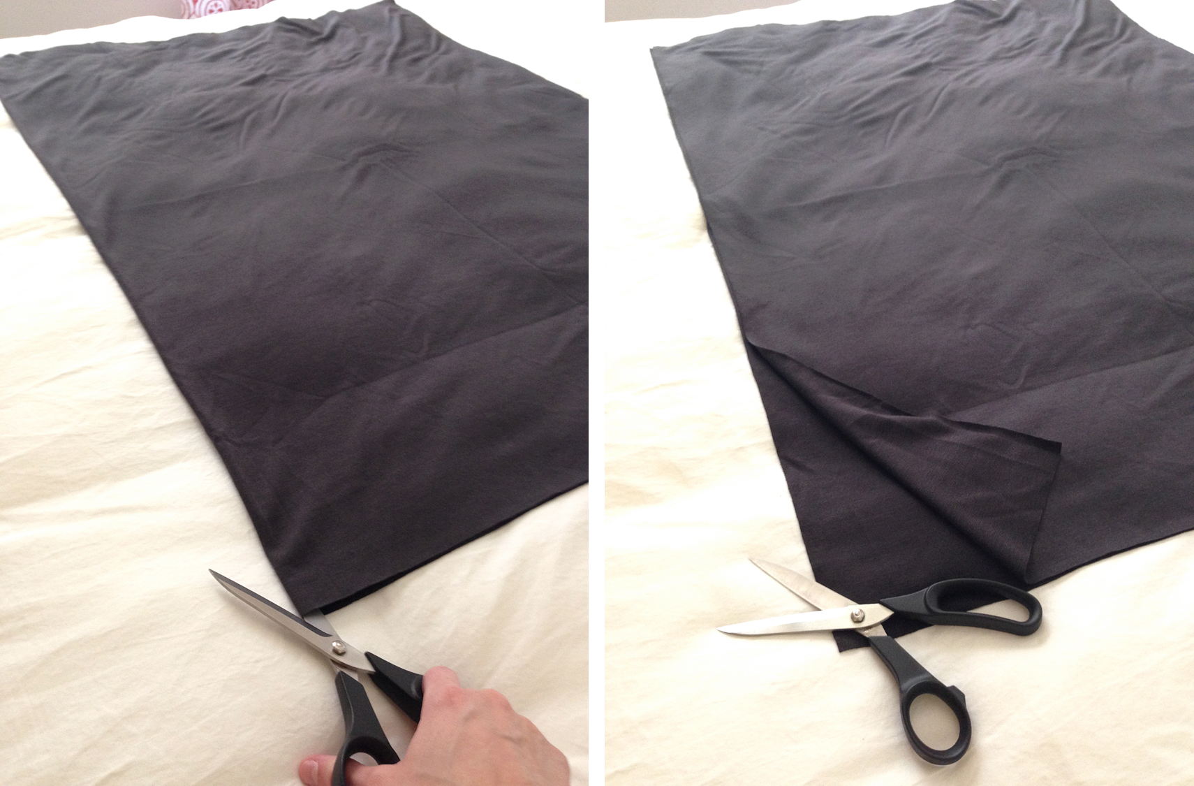2. Cut about 1/4″ around the pinned lines. Use your sewing machine to sew along the pins. Try your supersized smock on and relish in your potato sack of a dress. Lookin good, am I right?