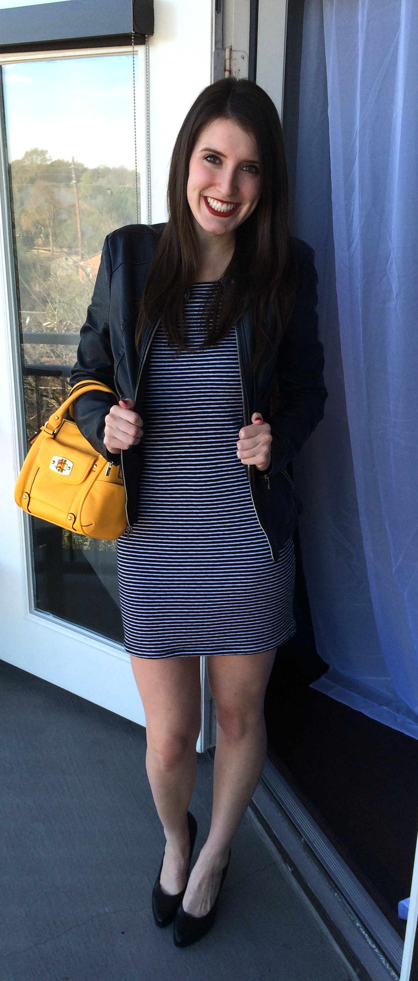 Dress – Made by Me! || Shoes (similar) – Nine West || Purse – Target || Jacket (similar) – Express || Earrings – Vintage Tiffany and Co. || Watch – Kate Spade New York || Lipstick – Make Up Forever in Rouge Artist Intense