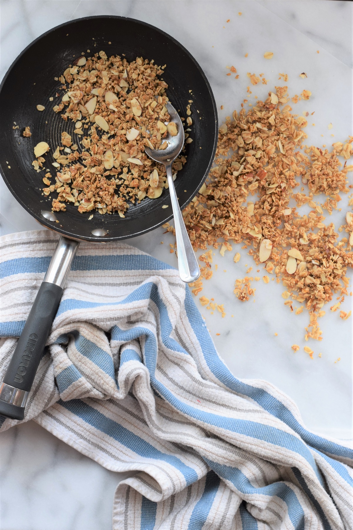 Realistically, though, I end up sleeping in a little, maybe taking a run and then sitting out on the balcony with a smoothie bowl. I still try to fit everything in, don’t get me wrong, but not until I’ve eaten a really great and relaxed breakfast. As soon as I started eating smoothie bowls more often, I found myself buying a lot of granola. More often, I find myself out of granola, and that’s how I ended up learning how easy it was to make stove top granola.