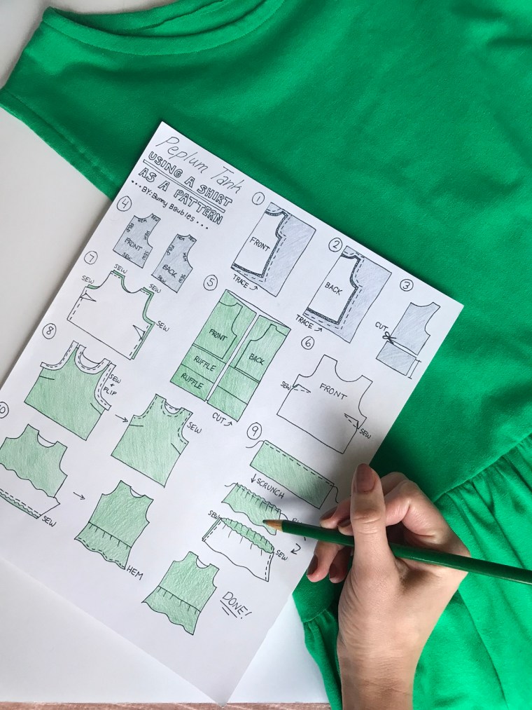 Peplum Tank Sewing Tutorial Using a Shirt as a Pattern