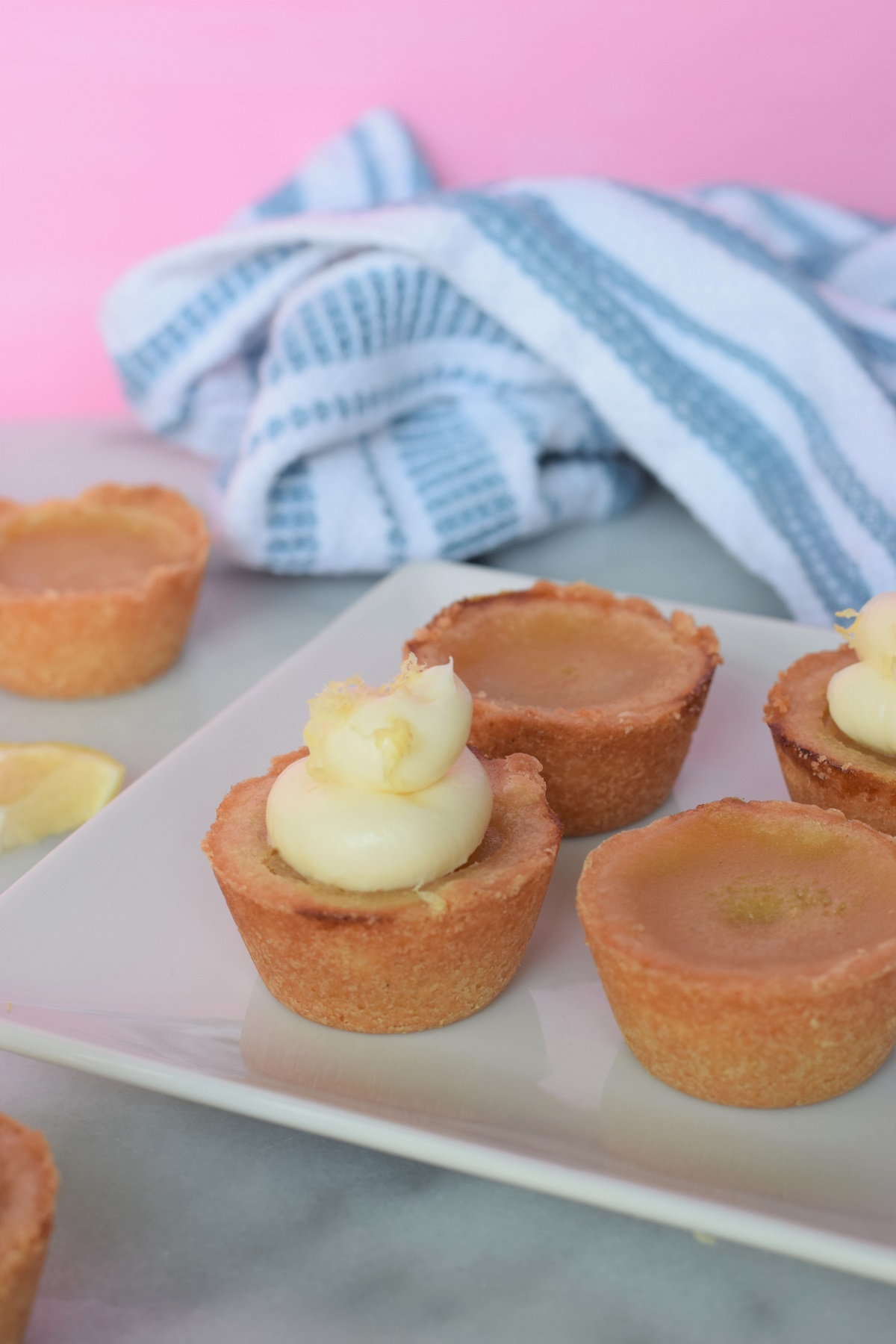 Since I couldn’t leave well enough alone and I wanted to add some sort of Fall element to the tarts, I decided to top each tart with a little whipped cheesecake topping and OMG WOW. I love the combination of the tart lemon with the creamy cheese. Cheesecake always reminds me of the holidays, and so I thought it was the best way to make lemon dessert season last just a little bit longer. Though I ended up serving my tarts without the topping since the party was outside, I really loved trying a new variation.