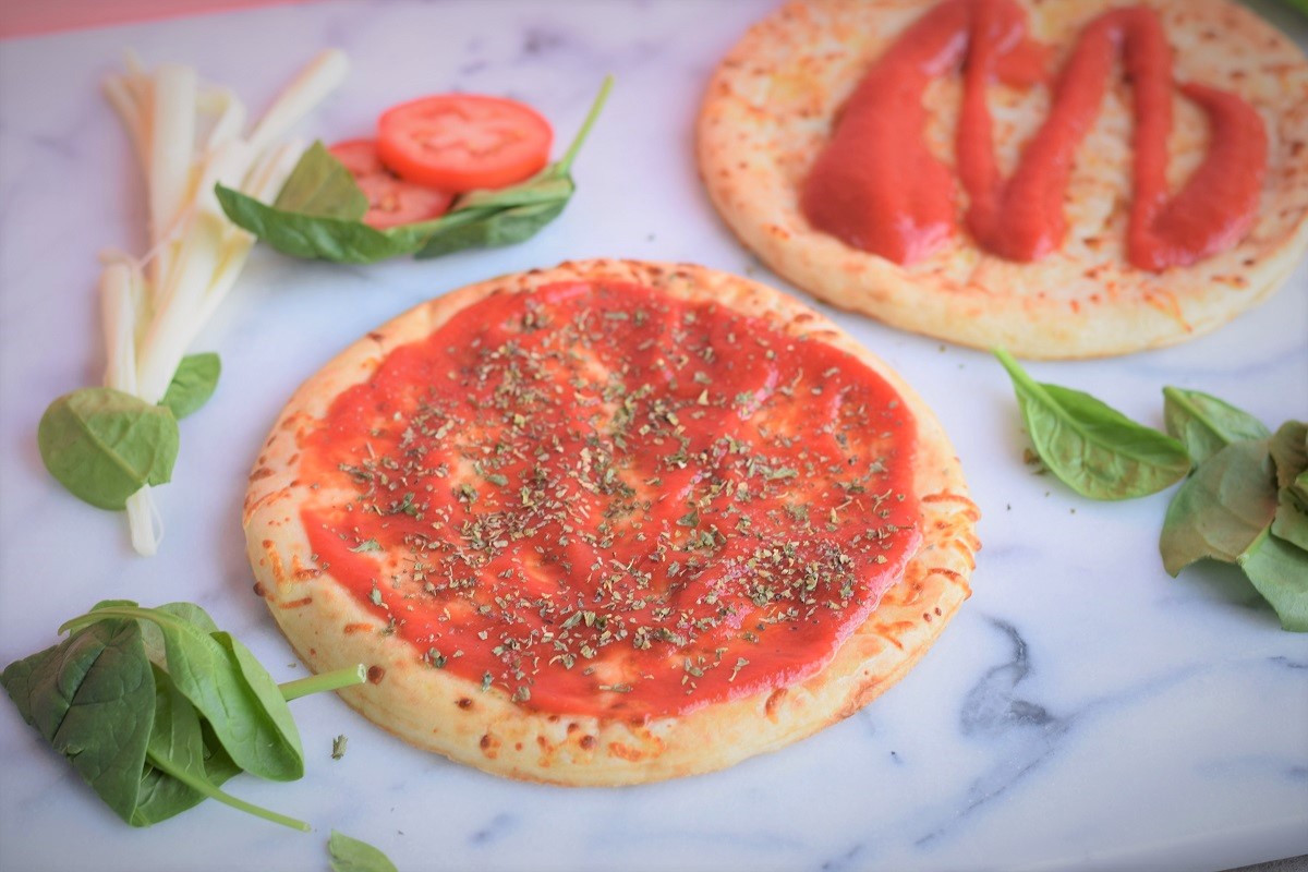 2. Pour tomato sauce on to your crust and spread to the edges. Sprinkle your spices generously all over your crust. (You may also just use premade sauce.)