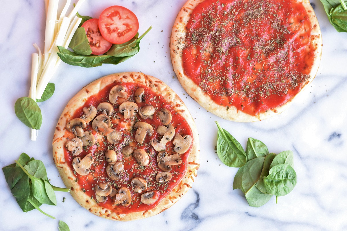 Other toppings such as tomatoes, olives, cooked mushrooms, spinach, pepperoni, etc.