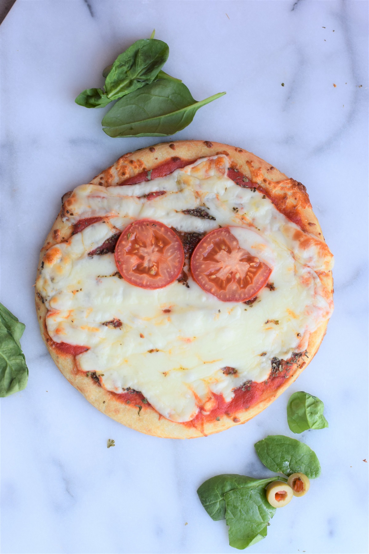 1. Start by preheating your oven to 450 deg F. Place your pizza crust on a baking sheet and brush with olive oil.