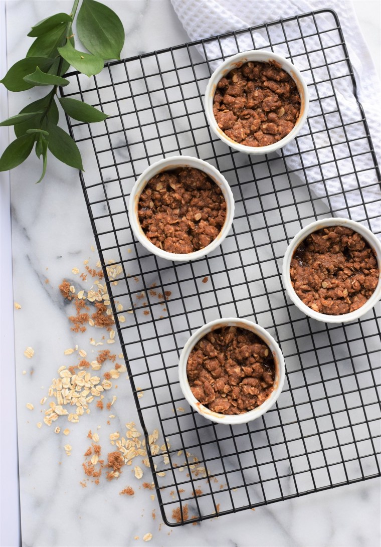 Before we get into the nitty gritty of the recipe, I think there is something to be said for single serving desserts. By splitting up the recipe into little ramekins, they become more special for a dinner party or an afternoon get together. Personally, I love them because I know I get an entire container of something to myself. Small things are also just cute. Don’t you agree? Why is that? I suppose a mini apple crisp is the puppy of full sized apple crisps, and we can all agree that puppies tend to be cuter than the dogs.