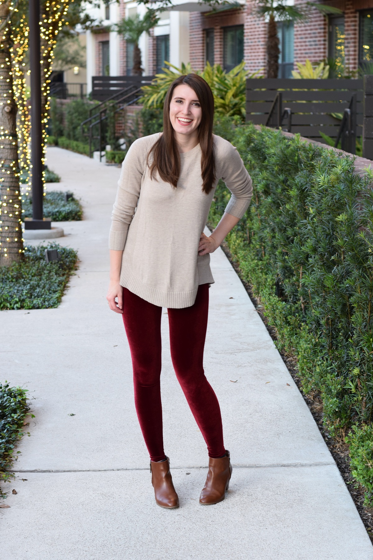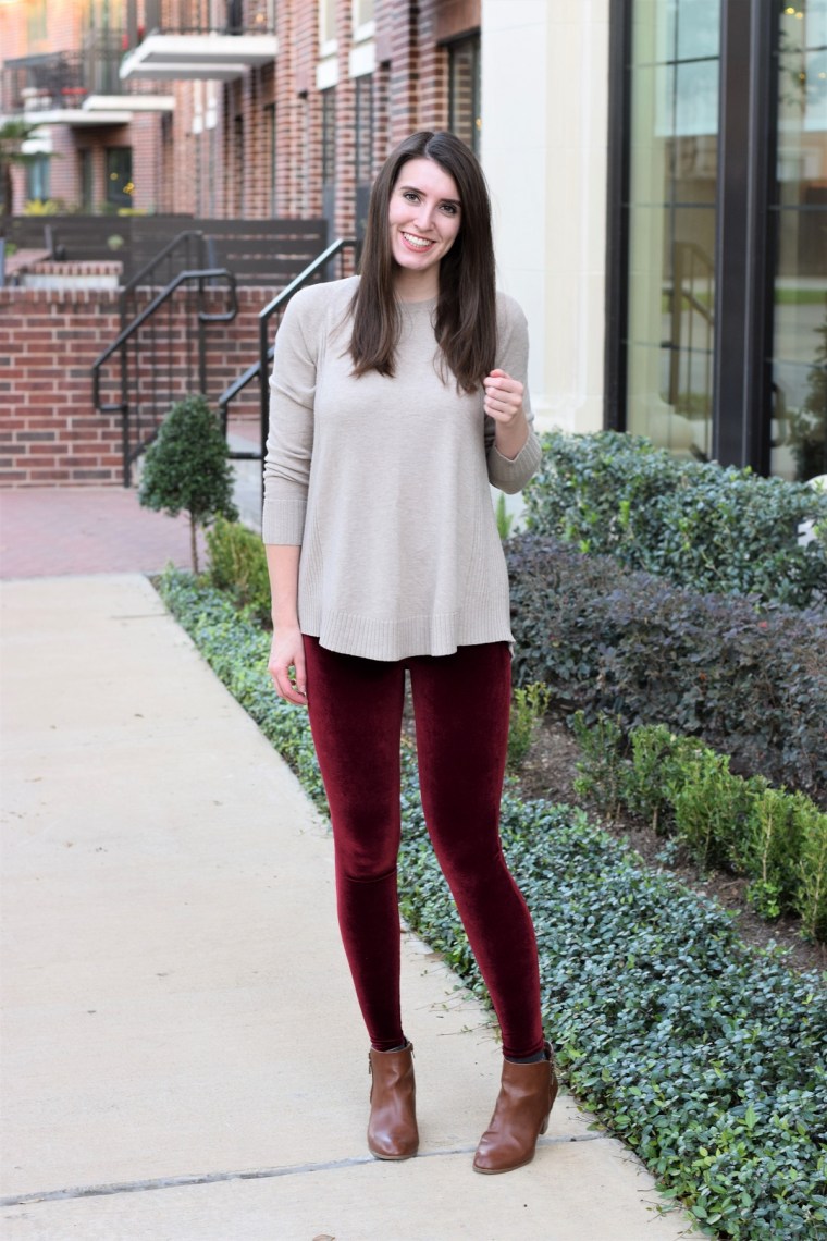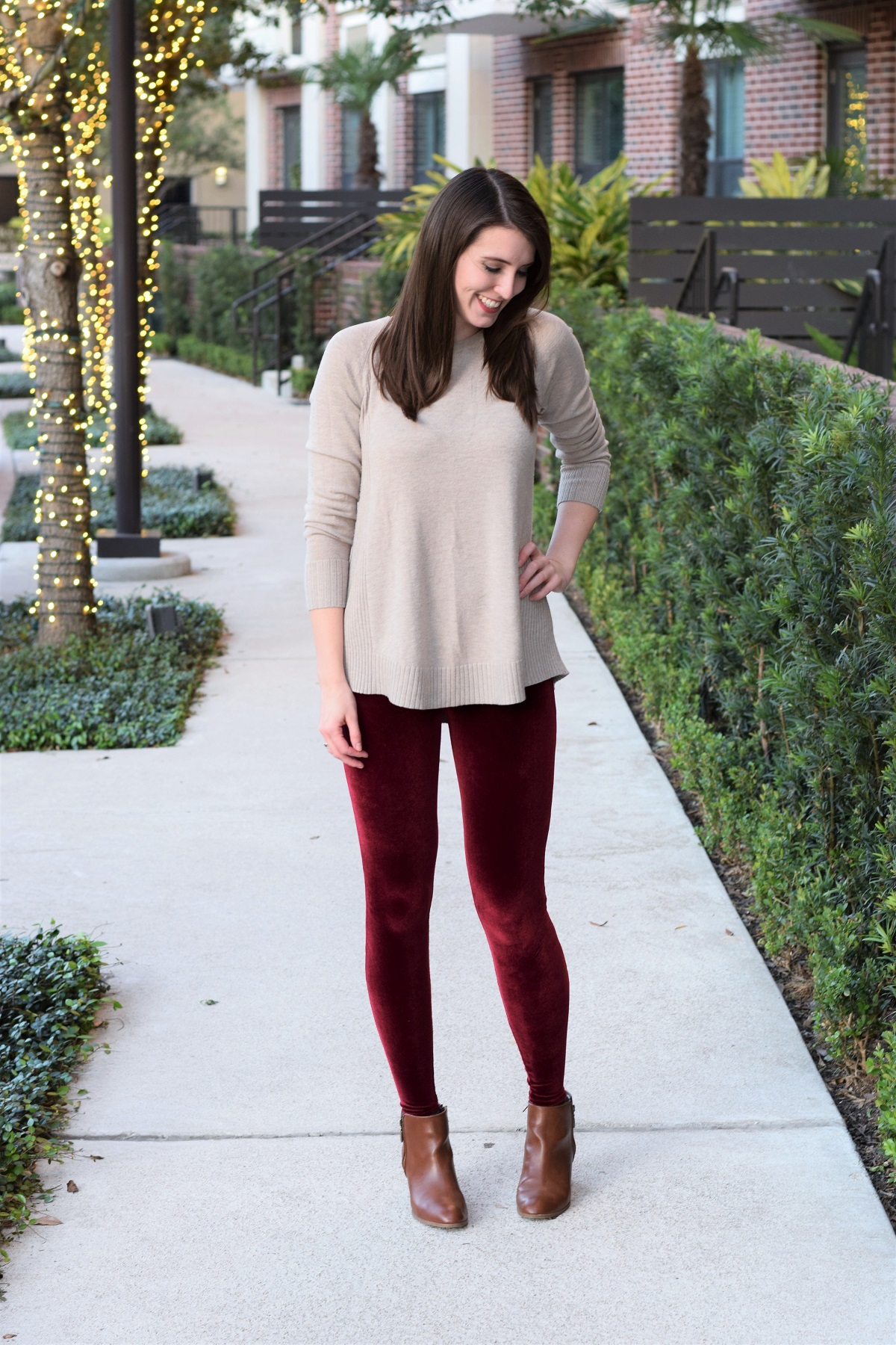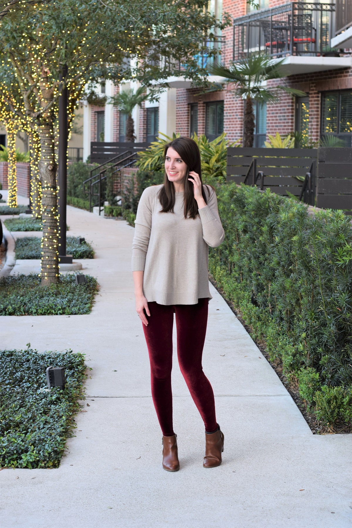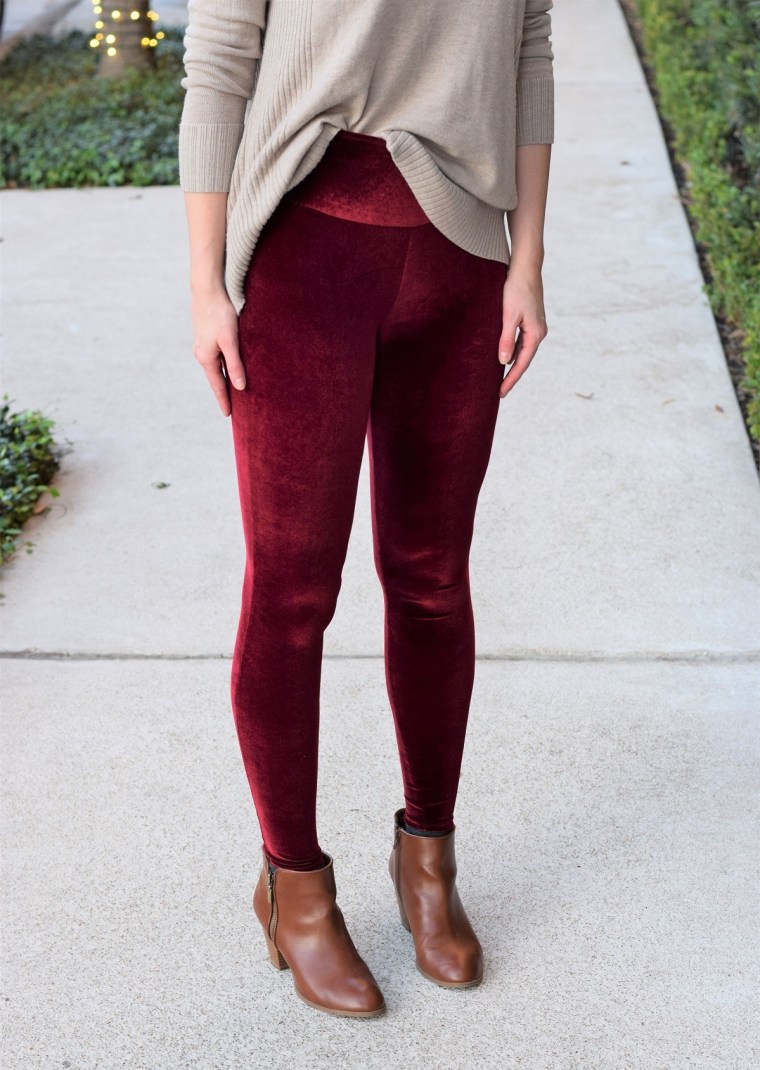 There are a few great things about stretch velvet. The first is that it is thick and warm, making them the optimal leggings as pants material. Velvet also has a lovely sheen to it which makes any outfit a little dressier, while also being so soft and comfortable!