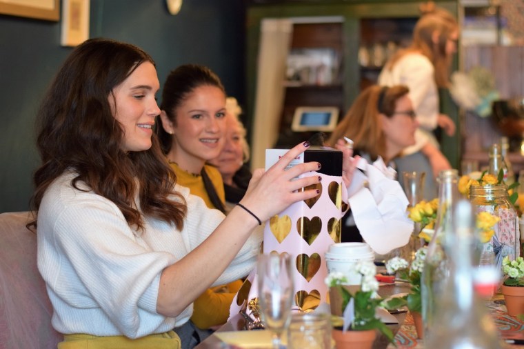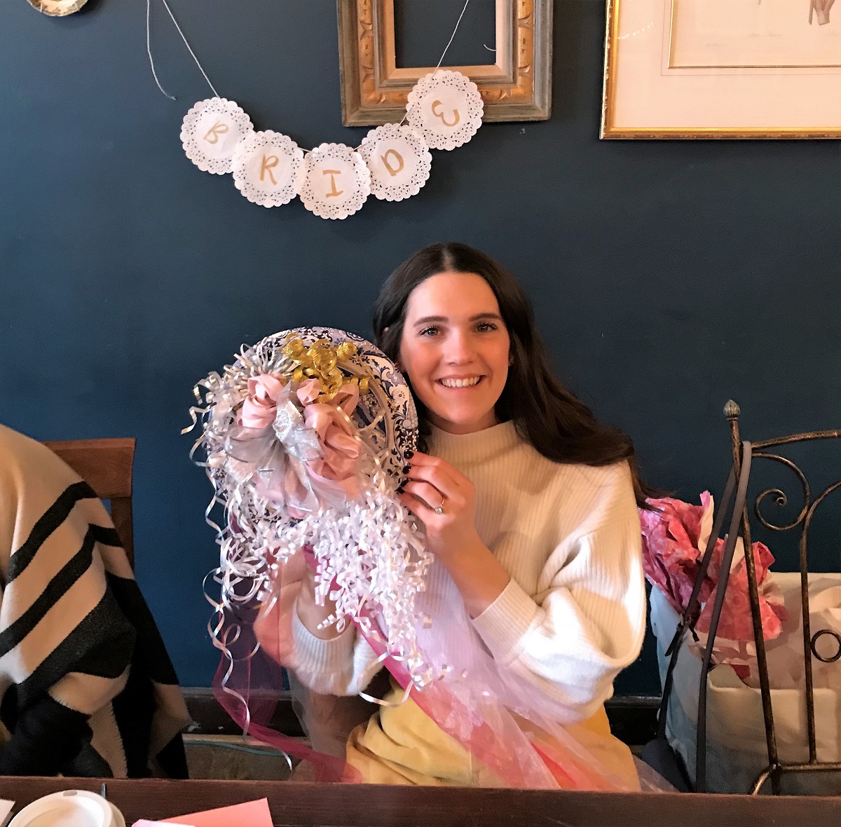 In general, most bridal showers include food, decorations, and gifts. In order to make things easier on ourselves, we held the party at a restaurant in Chicago called Fennel and Iris so that they could host in their space and prepare the food. The luncheon including a set of assorted tea sandwiches, roasted veggies, and an apple crisp, as well as tea, coffee, and of, course, mimosas!