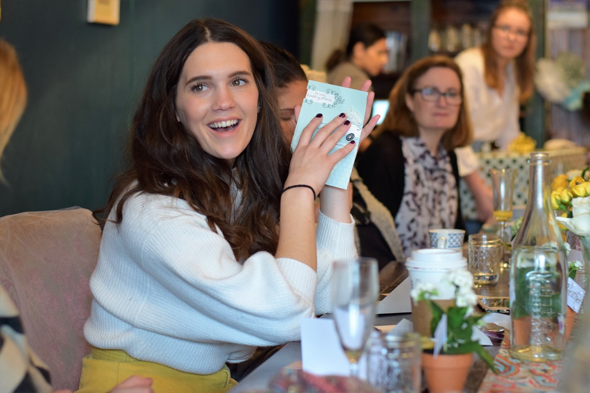 Though the sweet restaurant made it easy to throw a tea party, you could easily host your own party at home! Create a menu with a list of mini tea sandwiches and various teas, arrange flowers and candles on the tables, and have a small game that people can work on while they eat and mingle. We loved that the restaurant used a mix of chairs and had bistro lights strung from the ceiling to give it a homey look – something that anyone could do at home!