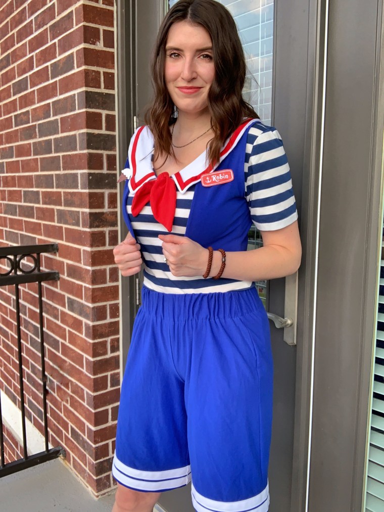 Happy October first! This year for Halloween, I wanted to recreate one of my favorite new characters from one of my favorite Netflix shows: Robin from Stranger Things! She worked alongside Steve Harrington at the ice cream shop at the mall, and even though we see her over many episodes, she consistently has her ice cream shop uniform on, thus making it the perfect Halloween costume as it’s her only outfit!