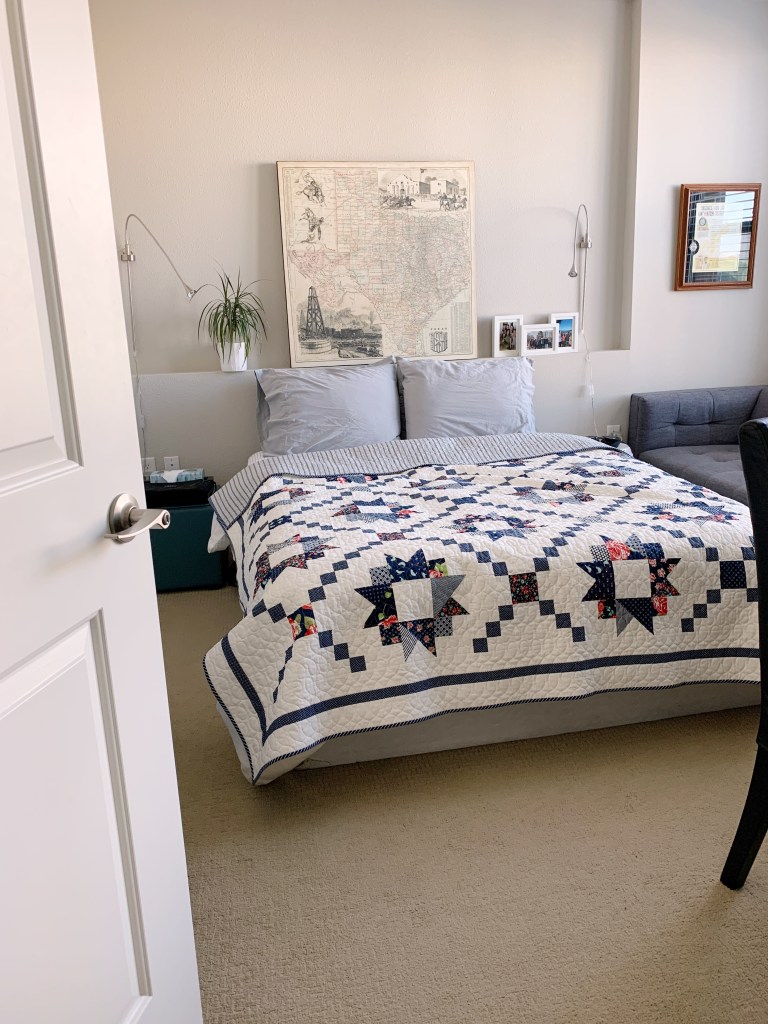 We also have really loved our apartment. Kyle lived here before me with a friend, and then I moved in when we got engaged. I put my spin on the decor, and made sure to leave a few of the bachelor touches they had put in place (gotta love whiskey bottle decor). The space was incredibly easy to move in to. Huge closet, the world’s largest apartment kitchen, and lovely views of west Houston. The only thing it didn’t have was a real dining space outside of the kitchen counter, but for everyday use it was perfect for us.