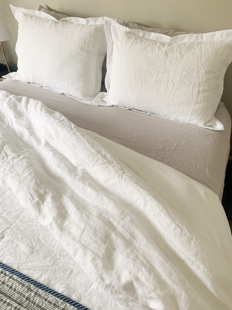 The most important thing, we thought, was to upgrade our bedding. We started by adding some of our favorite pillows. This is not sponsored, but we just LOVE these pillows! They are made with shredded memory foam so they are not as hot as traditional memory foam pillows, but still give you that support. They are also adjustable and come with extra foam, so you can get the pillows just the way you like them. Everyone who has come to visit has really loved them, (I think we have convinced at least a handful of guests to buy them too!) so I thought I should share.